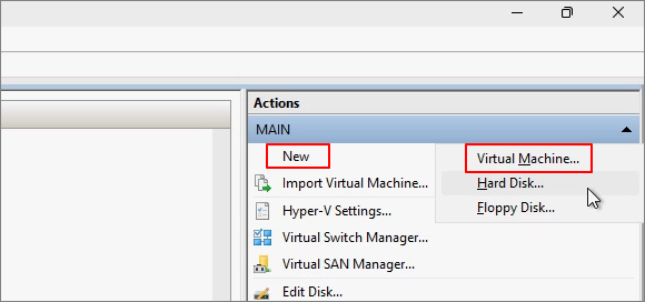 Hyper-V -> New -> Virtual Machine