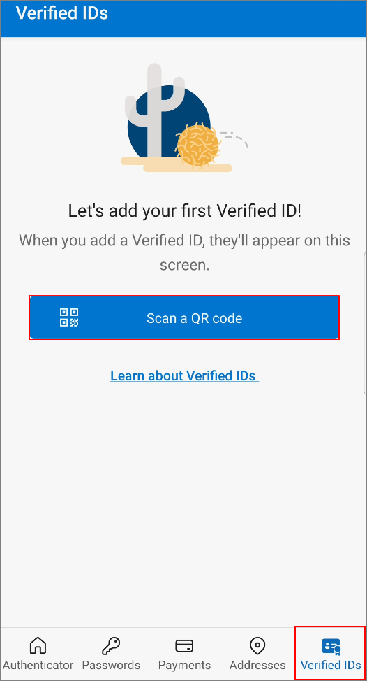 2. Use your new credential -> Try it now를 클릭하면 Verified ID를 테스트 할 수 있는 페이지로 이동됩니다.