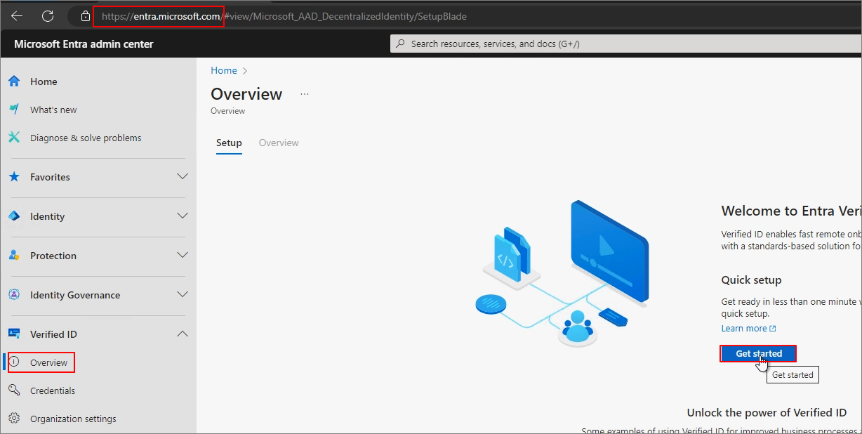 Entra 관리 센터 - Verified ID -> Overview -> Get Started