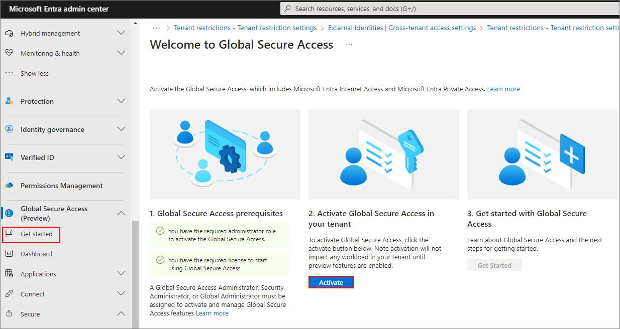 Global Secure Access -> Activate를 클릭하여 활성화 합니다.