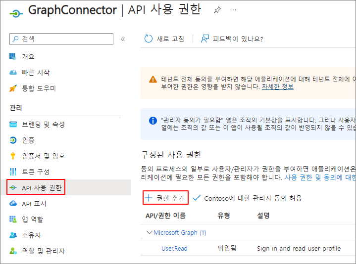 ExternalConnection.ReadWrite.OwnedBy, ExternalItem.ReadWrite.OwnedBy 권한 추가