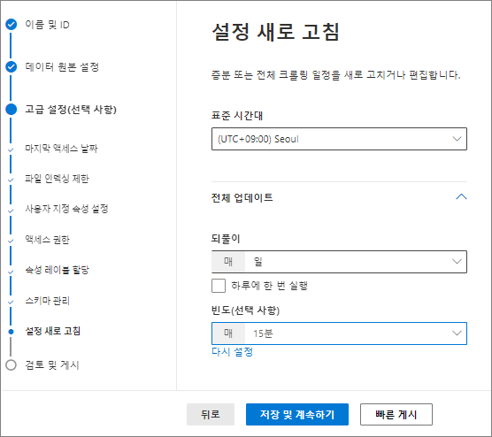 빠른 게시도 가능하지만 어떠한 설정이 있는지 확인하기 위하여 저장 및 계속하기로 진행하였습니다.