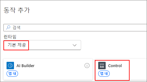 런타임을 기본 제공으로 설정 -> Variable 선택 (한글은 검색이 잘 안됩니다.)