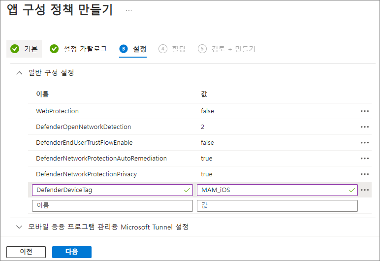 | DefenderDeviceTag | MAM_iOS | 디바이스 태그 지정 |
