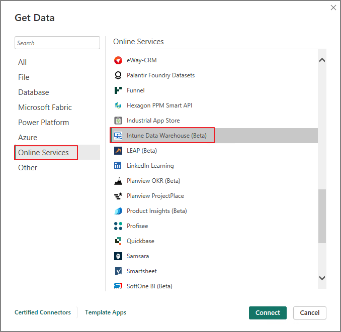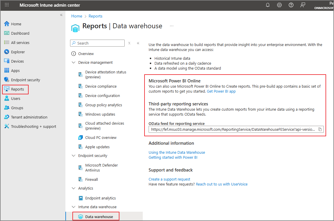 Intune Data Warehouse를 Power BI에 연결하는 방법은 크게 두 가지입니다.