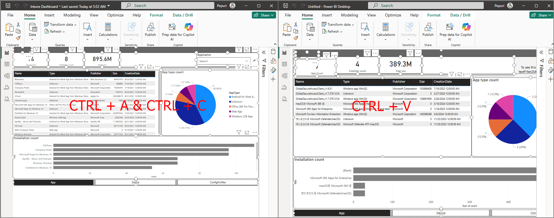 Power BI를 잘 활용하면 Intune 장치들을 직관적으로 관리할 수 있습니다.