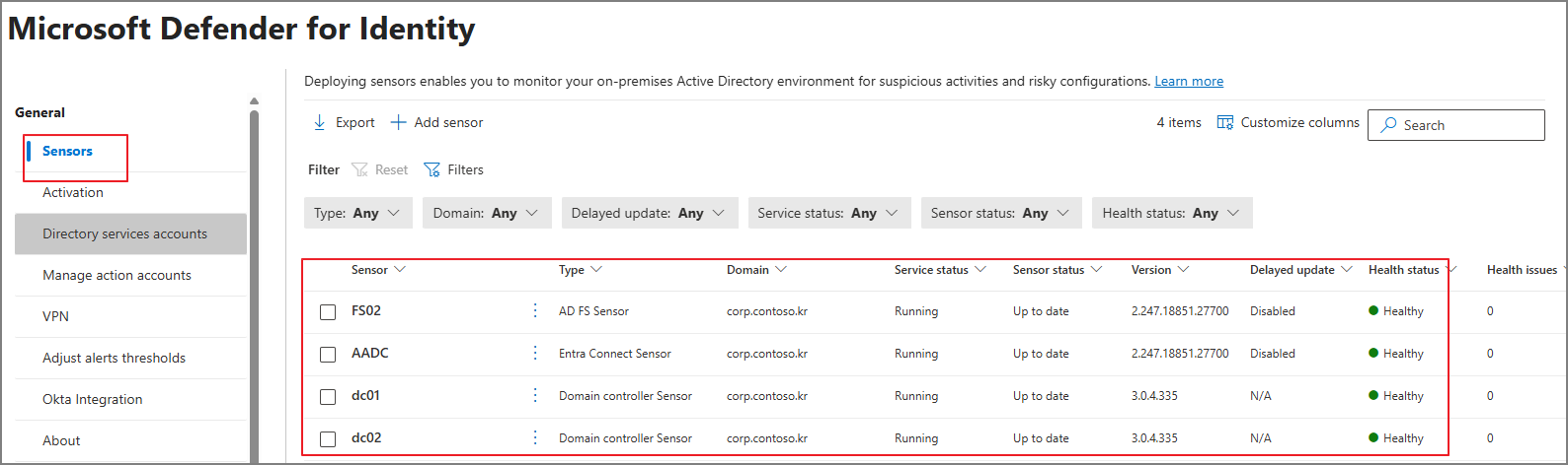 → Microsoft Defender for Identity 옵션 체크 후 저장