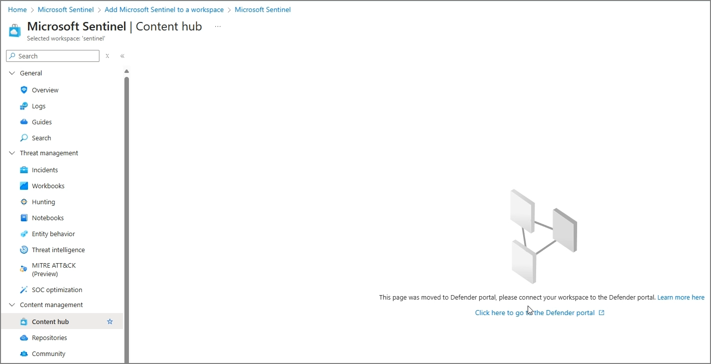 현재 Sentinel은 Defender 페이지와 통합중에 있습니다.