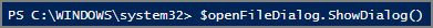if ($fileDialog.ShowDialog() -eq [System.Windows.Forms.DialogResult]::OK) {