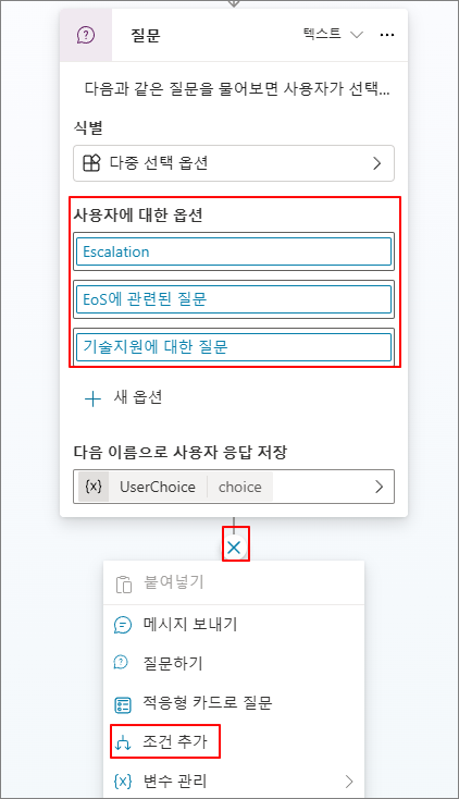 생성된 조건에서 변수 선택 -> Choice 선택 (변수는 생성될 때마다 이름이 다르게 표시될 있습니다.)