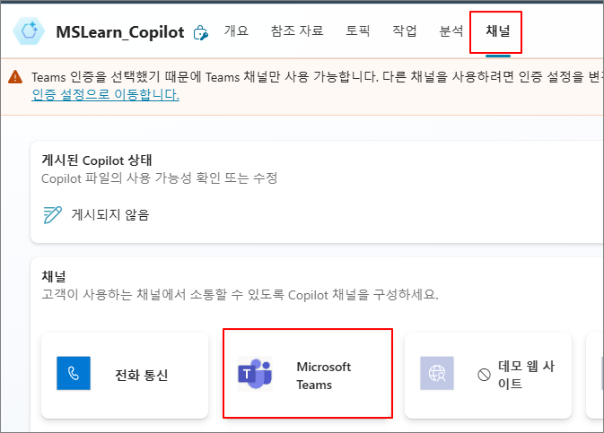 상단의 채널 -> Microsoft Teams