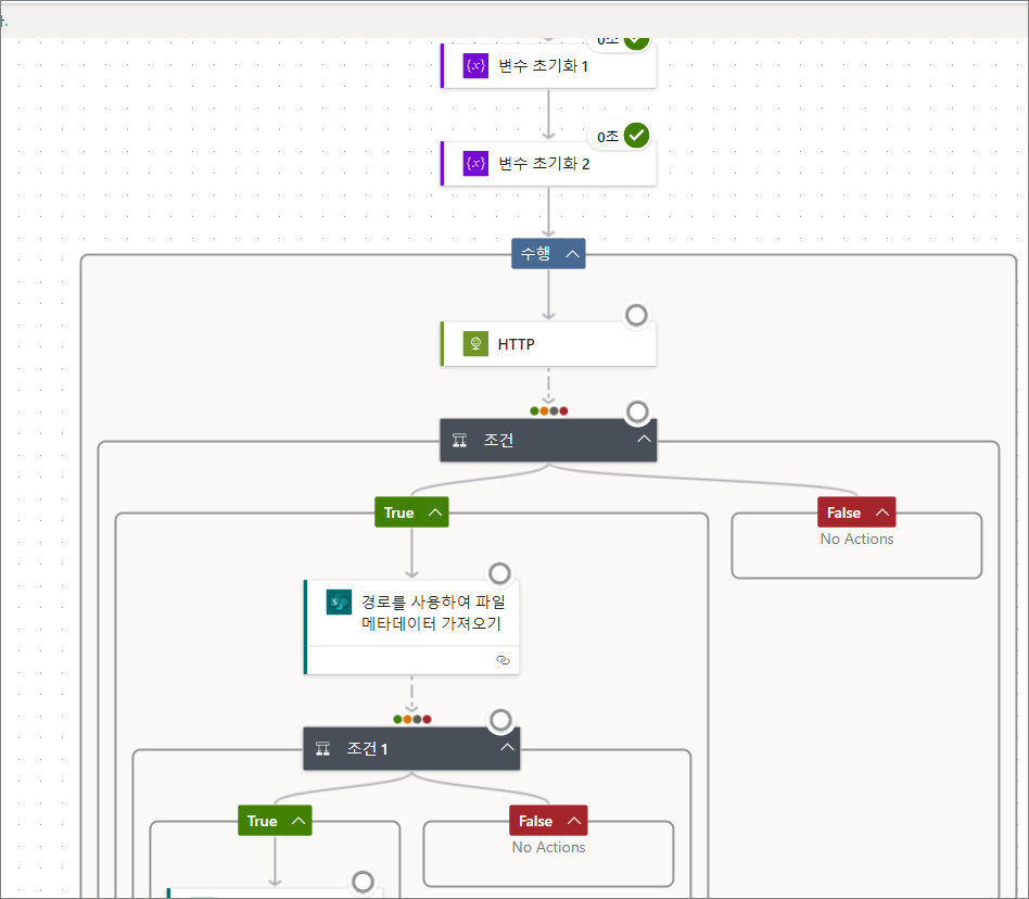 설정 -> 다음 이후 실행 -> HTTP에서 4가지 상태를 전부 지정합니다.
