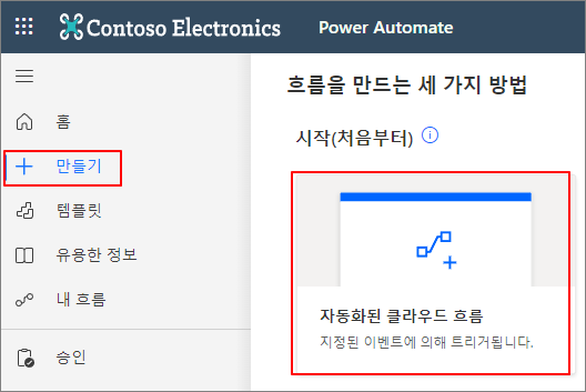 만들기 -> 자동화된 클라우드 흐름