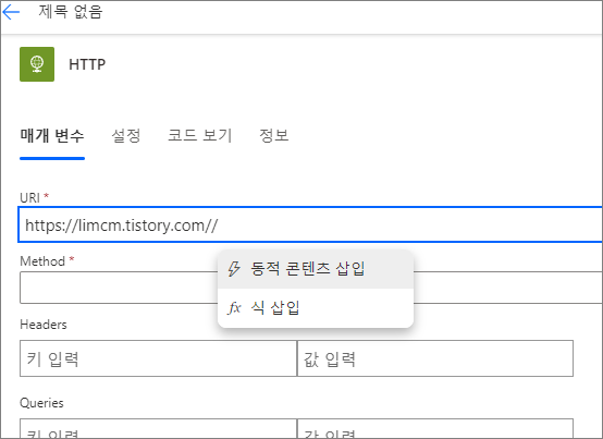URL 입력 후 마지막에 / 입력 후 동적 콘텐츠 삽입 선택