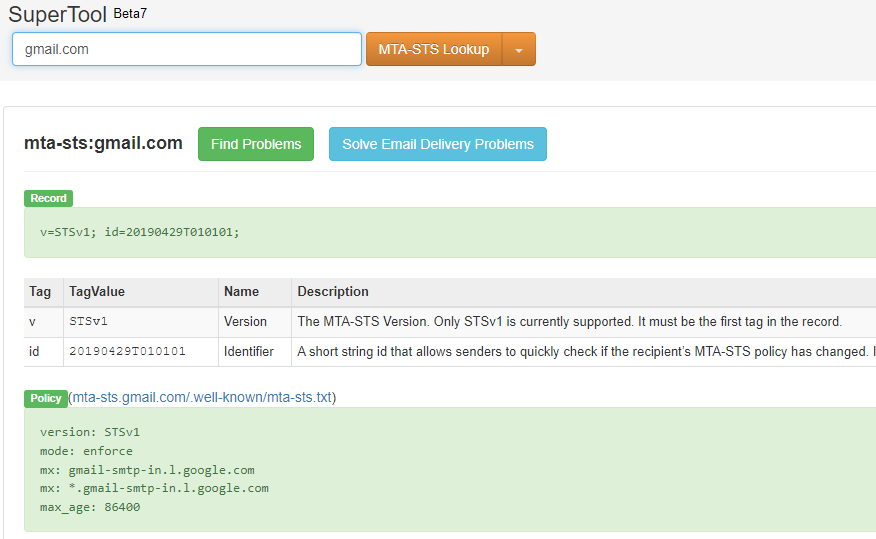 MTA-STS Lookup - Check domains for Inbound Transport Layer Security (TLS) Enforcement - MxToolbox