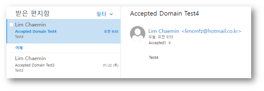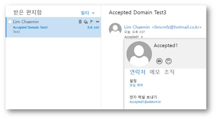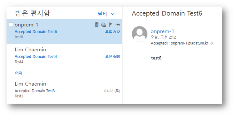 [테스트2-2] adatum.kr 사서함 생성 후 수신