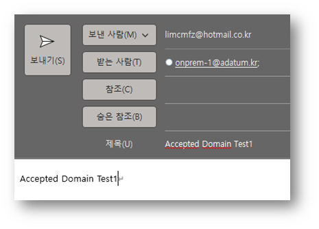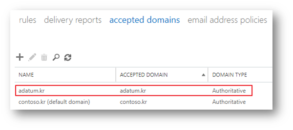 [테스트2-1] adatum.kr 을 Accepted domain 추가 (Authoritative)