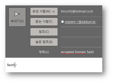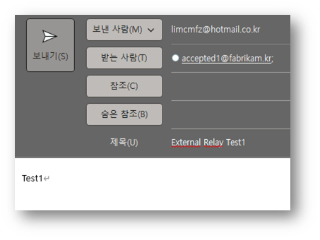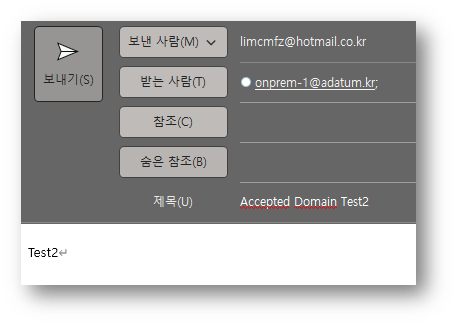 아래와 같이 메일 발송 테스트 - Contoso.kr 은 정상 수신