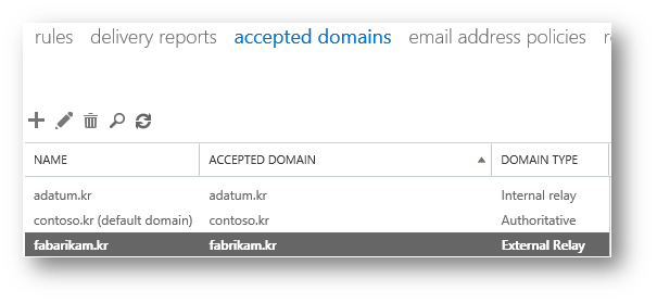 이번에는 fabrikam.kr 을 External Relay로 등록해 보겠습니다.