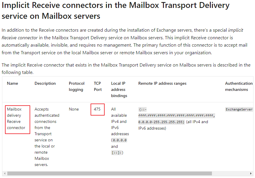 Implicit Receive connectors in the Mailbox Transport Delivery service on Mailbox servers