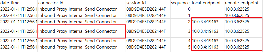 암시적 송신 커넥터의 로깅ㅁ을 활성화 하면, 아래와 같이 Inbound Proxy Internal Send Connector 로그가 활성화됩니다.