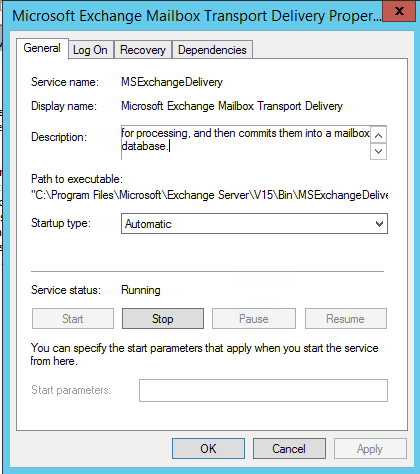 FrontEnd Transport service -> Transport Service -> Mailbox Transport Service -> Mailbox Transport Delivery Service