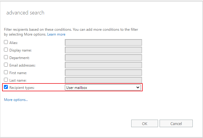 | -RecipientTypeDetails The RecipientTypeDetails parameter filters the results by the specified recipient subtype. Valid values are: