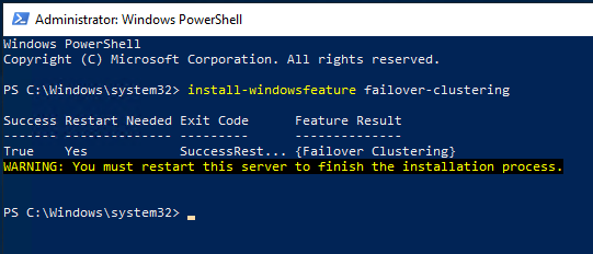 원래 DAG를 사용했다면, Install-Windowsfeature failover-clustering 명령어로 클러스터링 기능을 우선 설치합니다.