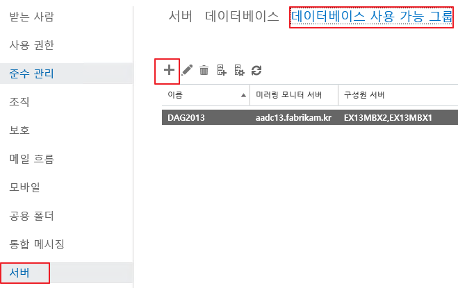 서버 - 데이터베이스 사용 가능 그룹 - 추가(+)