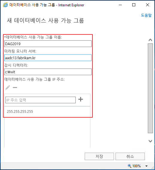 DAG 정보를 입력후 저장 (미러링 모니터 서버는 기존 정보와 동일하게 입력합니다.)