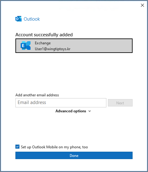 기존에는 Outlook 연결시 Windows 인증 (기본인증)창으로 나타납니다.