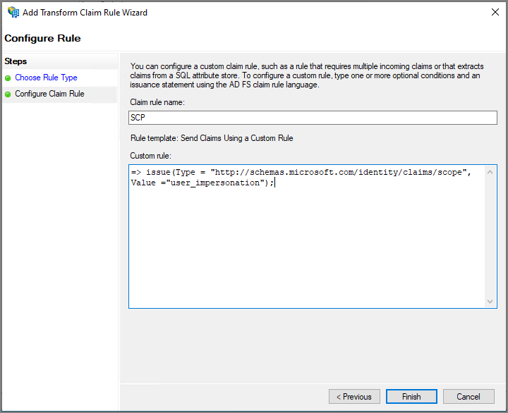 | Claim Rule Name | Custom Rule |
