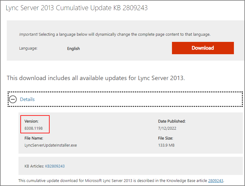 Download Lync Server 2013 Cumulative Update KB 2809243 from Official Microsoft Download Center