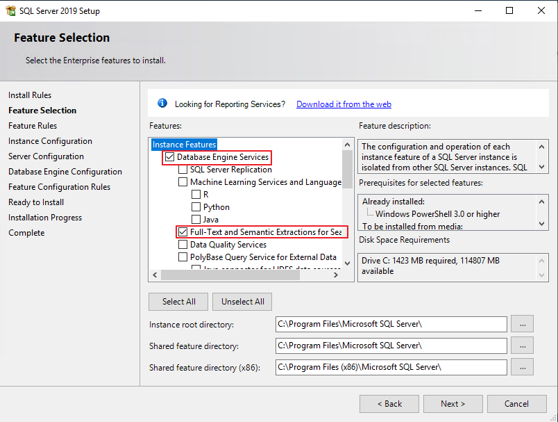 Database Engine Services, Full-text and Semantic Extractions for~ - Check - Next
