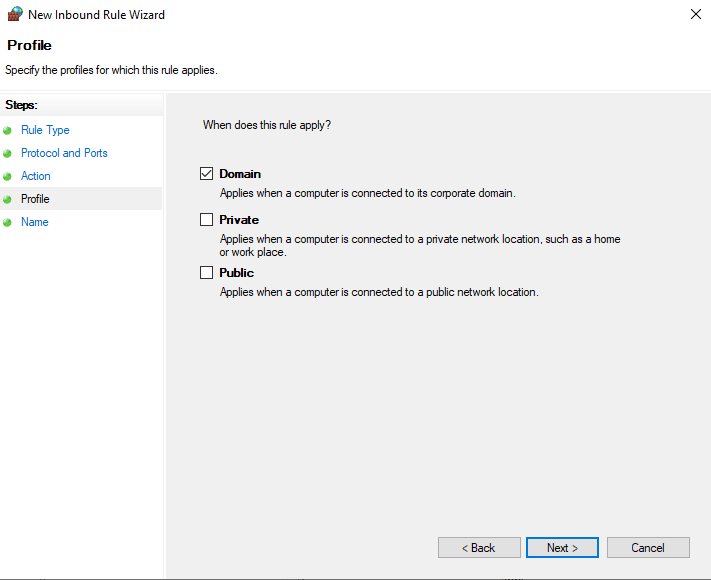 TCP - 135, 445, 1433, 4022, 49152-65535 지정 후 Next - 사실 해당 설정은 SCCM과 동일하게 했습니다. 이것보다 필수 포트는 적을 수 있습니다.