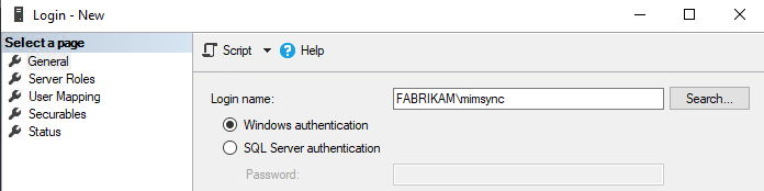 New-ADGroup –name MIMSyncOperators –GroupCategory Security –GroupScope Global –SamAccountName MIMSyncOperators -Path "OU=MIMSVC,DC=Fabrikam,DC=kr"