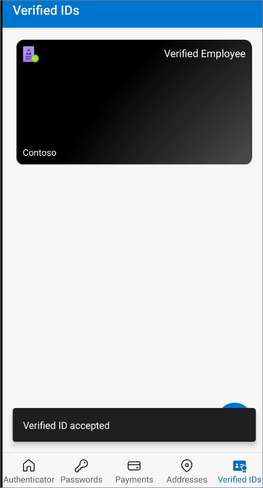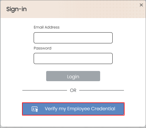계정 정보 대신 DID를 이용하여 로그인을 할 수 있습니다. Verify my Employee Credential