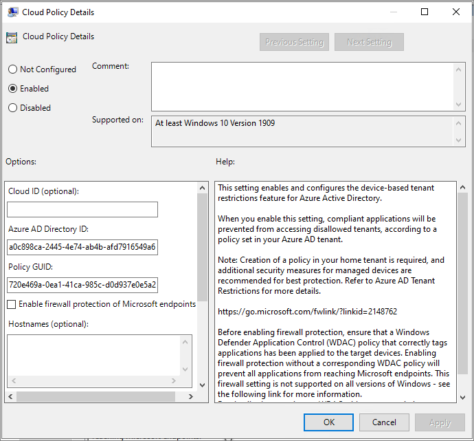 Step 2: Enable tenant restrictions on Windows managed devices (preview)