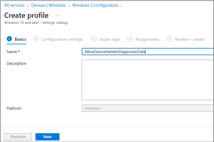 | Setting: Configure Telemetry Opt In Settings Ux Value: Disabled Setting: Configure Telemetry Opt In Change Notification Value: Disabled Setting: Allow device name to be sent in Windows diagnostic data Value: Allowed |