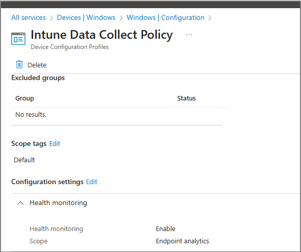 Intune 데이터 수집 정책이 활성화된 경우, 데이터가 수집된 것으로 추정됩니다. 하지만, 제 테스트 테넌트에서는 수집이 이루어지지 않았으며, 공식 자료자료 대로 진행하였습니다.