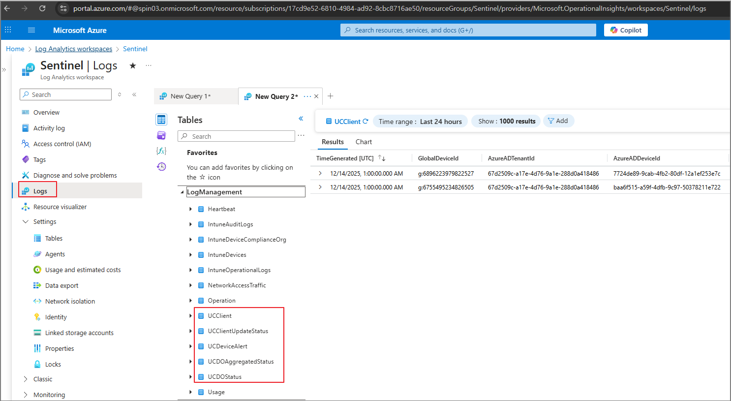 참고로 Log Analytics 상에서는 UC로 시작되는 테이블로 저장됩니다.