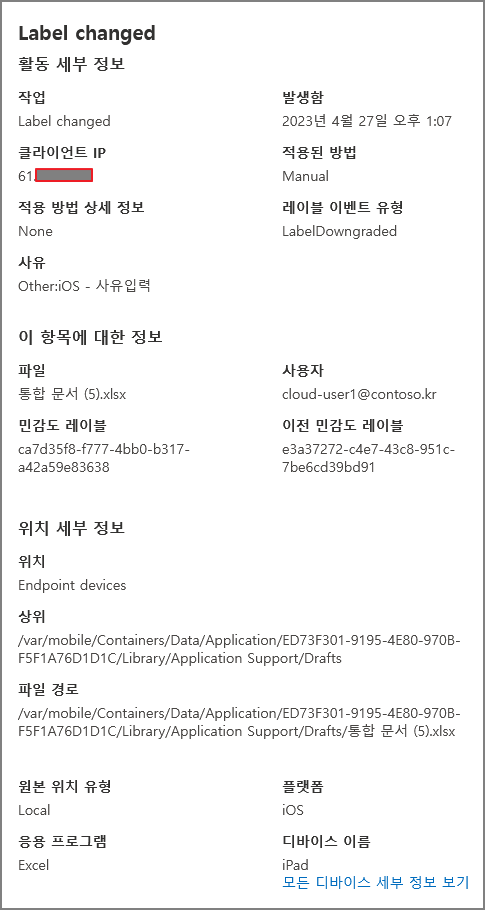 활동 탐색기(Activity Explorer)에는 AIP의 Label Log가 기록됩니다.