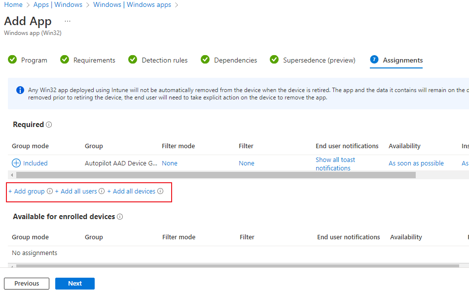 - Intune에 등록된 장치들에 자동 배포