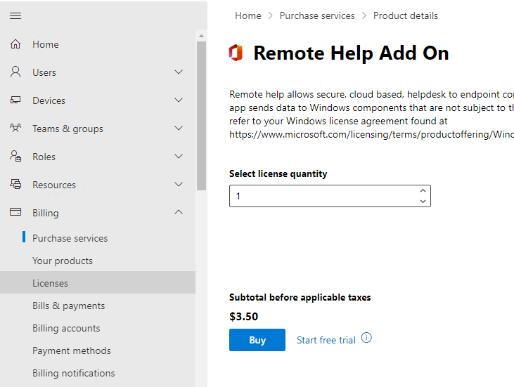 Remote Help의 경우 현재까지는 1개의 라이선스만 있으면 기능은 활성화 할 수 있는 것으로 보입니다.