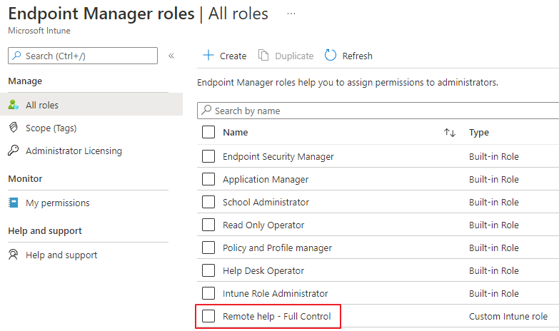 Remote Help를 사용하려면 적절한 권한이 필요합니다.
