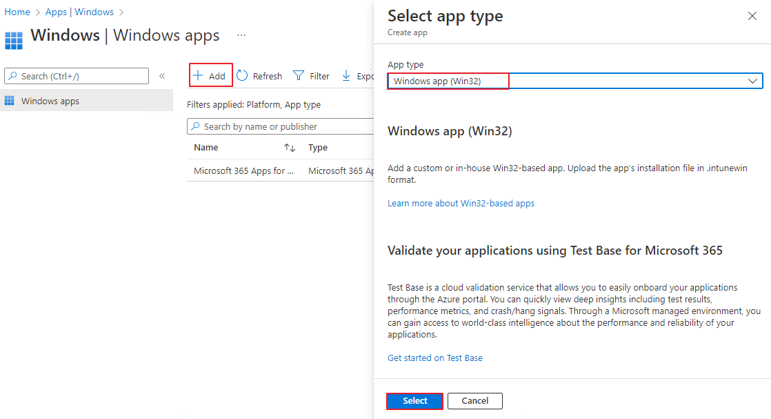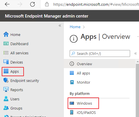 MEM Admin Center -> Apps -> Windows