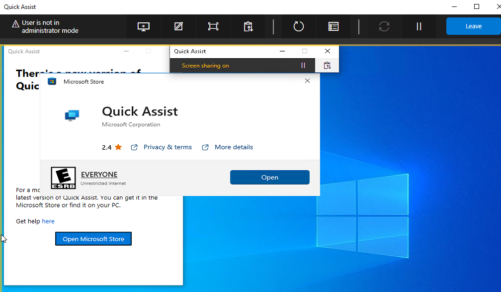다음과 같이 원격 지원이 가능합니다. 빠른 지원(Quick Assit)와의 차이점은 UAC 요청할 수 있는지 여부인 것으로 보입니다.