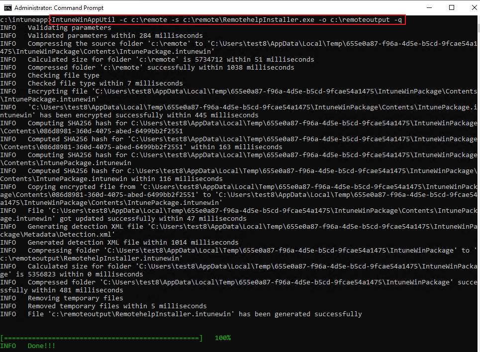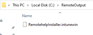 IntunWinAppUtil -c c:\remote -s c:\remote\RemotehelpInstaller.exe -o c:\remoteoutput -q