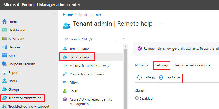 MEM Admin Center -> Tenant administartion -> Remote help -> Settings -> Configure