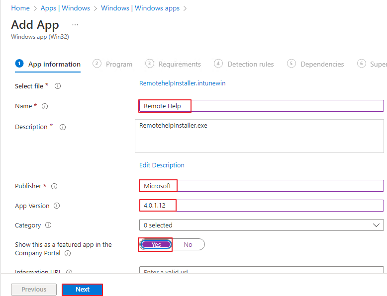 [단계1] Remote Help 설치파일을 Intunewin 파일로 변환